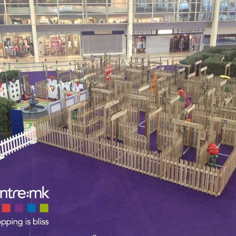 So Timbamaze was born! – Probably the best feature of Timbamaze is its adaptability, allowing installation in a huge variety of spaces both outside and inside buildings. The mazes unique construction method is fully modular and self-supporting so does not require any ground fixings, allowing it to be installed onto paving, concrete, asphalt or grass without causing damage to the surface. We have subsequently installed mazes into shopping malls with polished marble floors without damage.